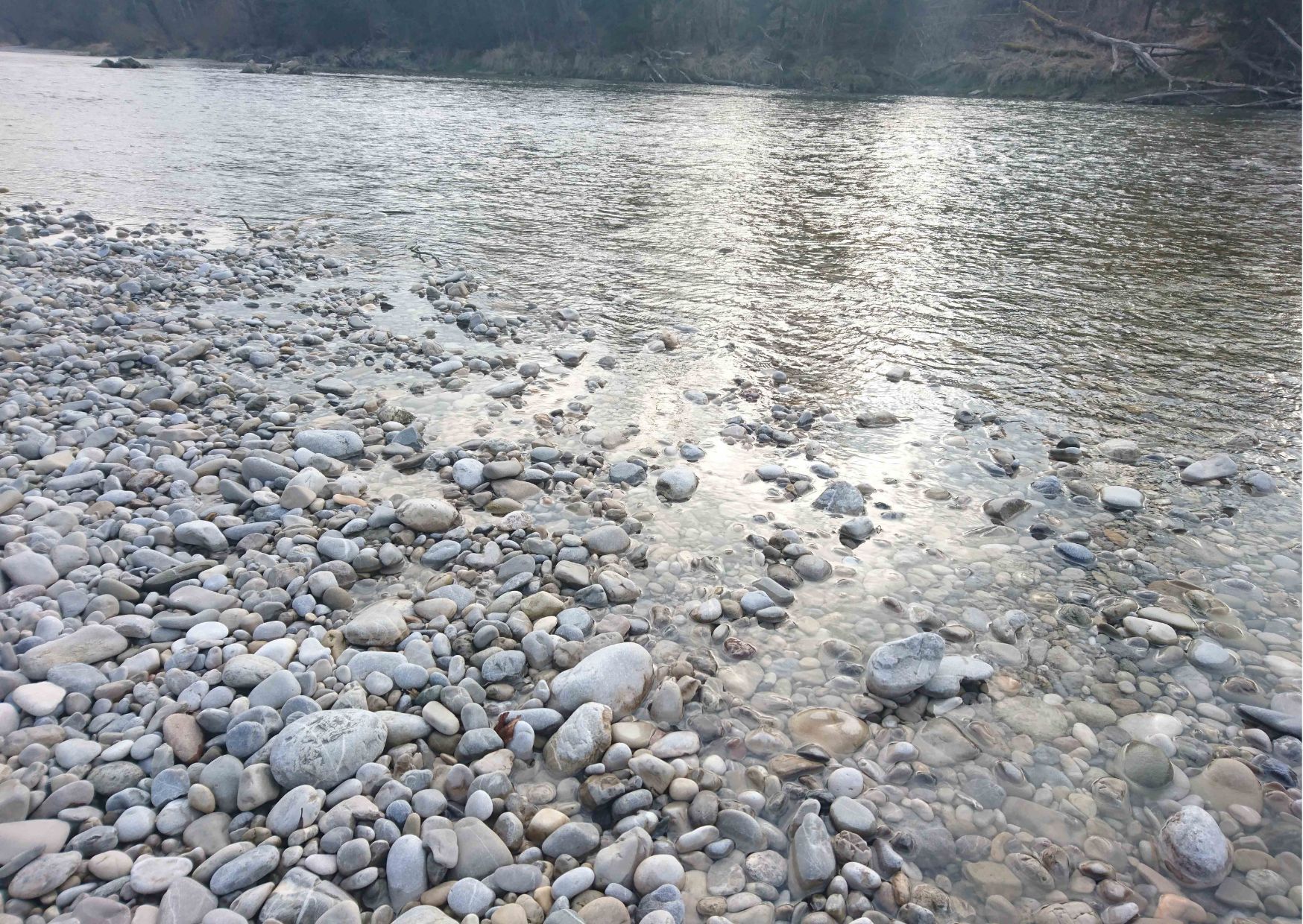 Meine Augen, meine nackten Füße und Hände, und vor allem auch meine Seele, lieben sie, weil sie dann ihr Kiesbett offenbart – in ihrer faszinierenden lasziv erotischen Schönheit. Weil sie mich dann tief blicken, fühlen und spüren lässt - bis auf den Ur*Grund ihrer Fluss*Seele. Sinnlich rundgeschliffene oder gebrochene Isar*Kiesel - changierend von weiß über rosé bis schwarz - flirten mit mir durch das klare Wasser, schmeicheln und zwinkern mir ihre Botschaften zu. Auch der Himmel kuschelt mit ihr und spiegelt sich auf ihrer dahinplätschernden Wasseroberfläche.